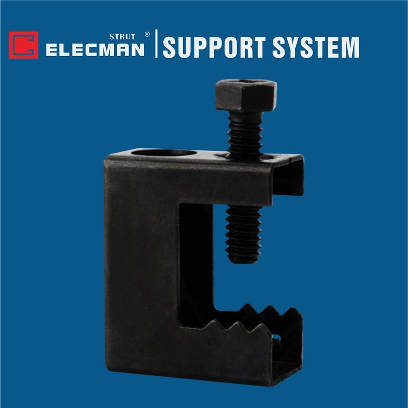 ELECMAN fornisce morsetti per travi BC in acciaio per molle con rivestimento nero a grandezza naturale flangia da 1/2 pollice.