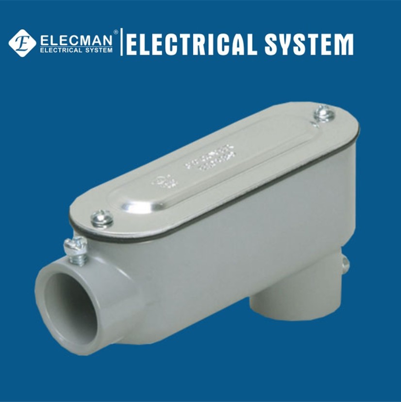 Alluminio 1/2 di ELECMAN®» - 2" tipo della libbra della vite di fissaggio dei corpi del condotto di EMT è usato con i condotti di EMT, per la trazione dell'accesso o tagliare in direzioni multiple. La copertura smontabile permette l'accesso per manutenzione e rubinetti e giunture di fabbricazione ai conduttori.